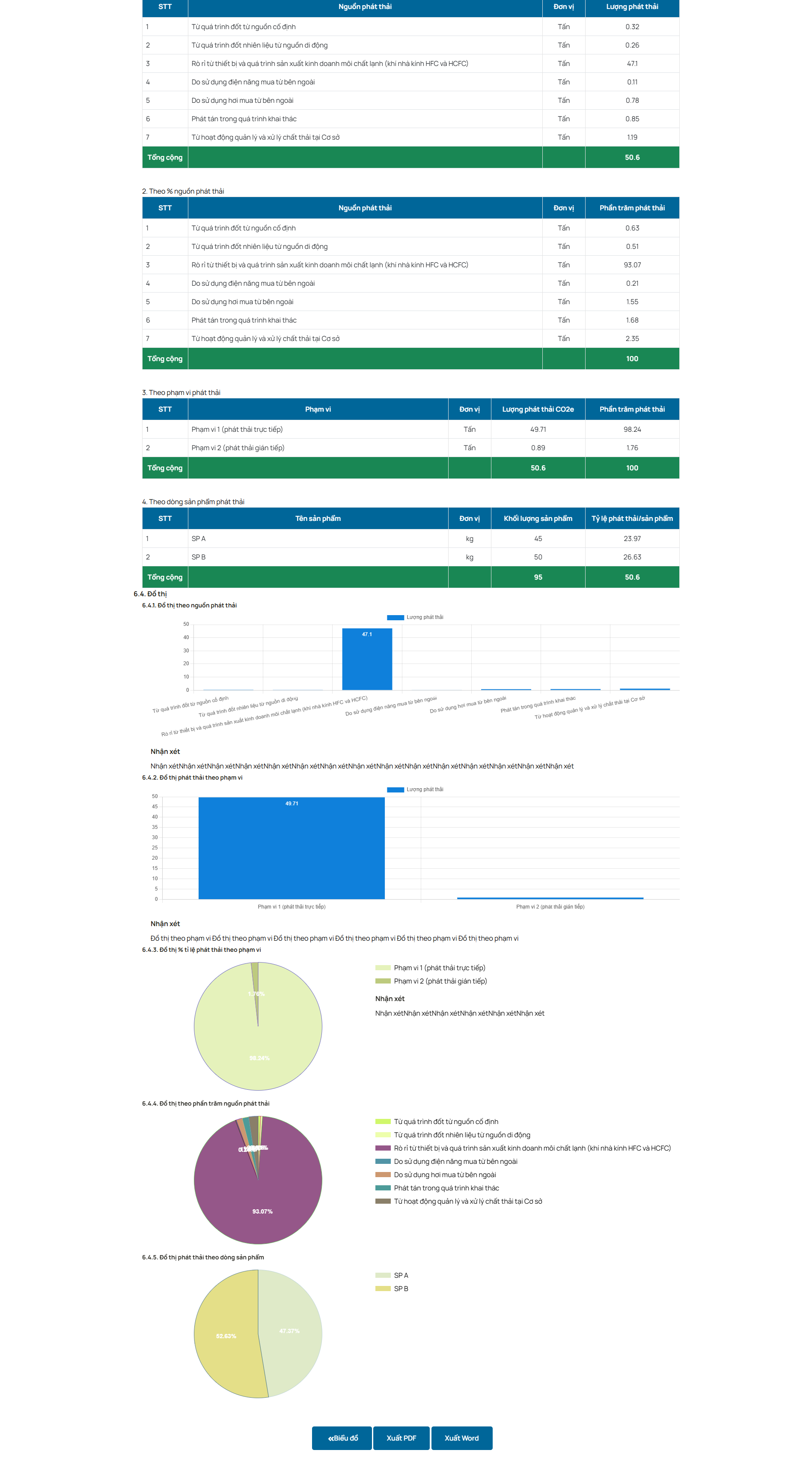 Giao diện này cũng thường tích hợp các biểu đồ và báo cáo trực quan, giúp người dùng dễ dàng theo dõi tình hình phát thải khí nhà kính.
